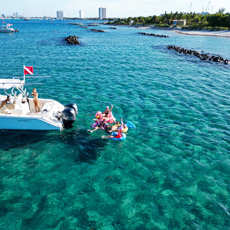 Book a charter – Live Free Diving has a Peanut Island Boat & Snorkel Tour or you can look into private charters for larger groups with Visit Palm Beach.